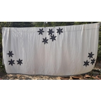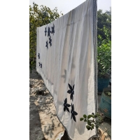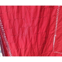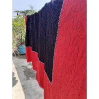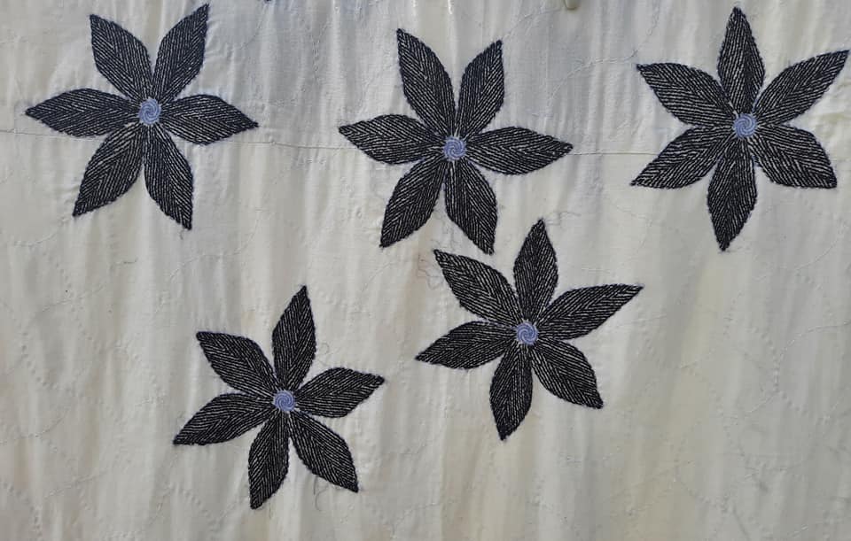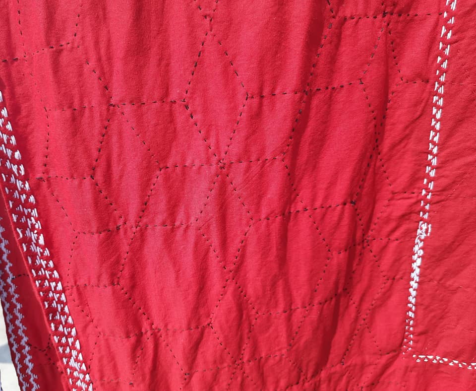 জমিন জুড়ে কাঁথা ফোঁড়ের নাকশা করা আর চার পাশে নকশি ফোঁড় দিয়ে পাড় করা।